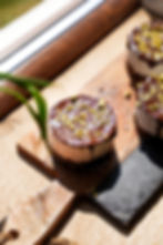 3) Istopiti tamnu čokoladu zajedno sa kikiriki puterom i preliti preko svake tortice. Dodatno iseckati pistaćže pa posuti po još istopljenoj čokoladi. Staviti u frižider na pola sata da se čokolada stegne.